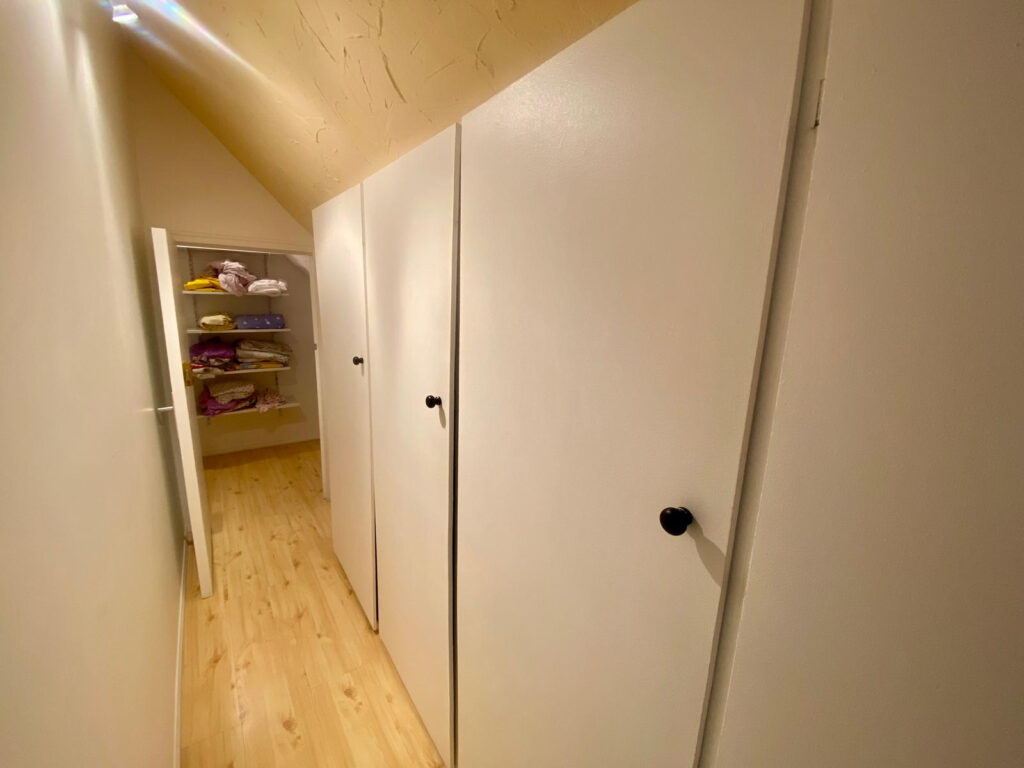 Le couloir amène à la partie nuit : une chambre, wc, et une salle de bain avec baignoire.