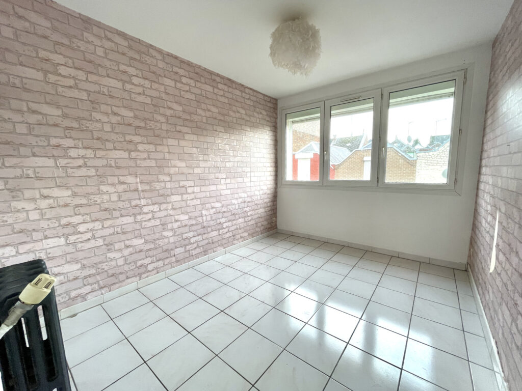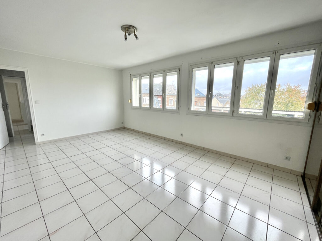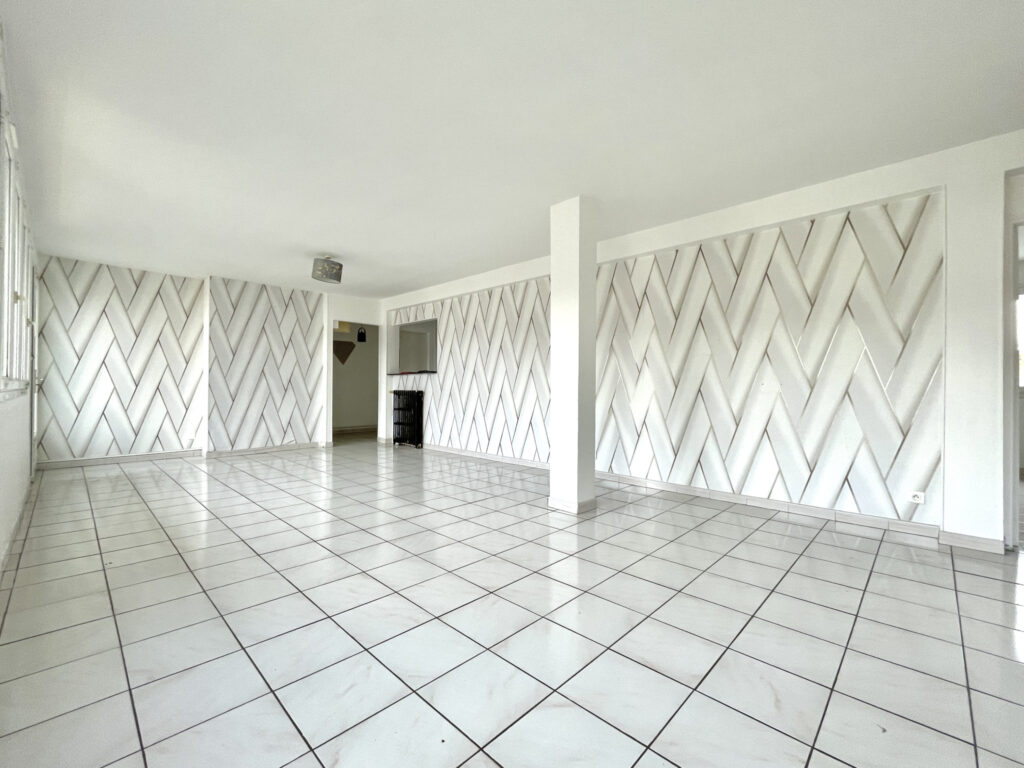 Entrée, grand séjour agréable et très lumieux de 33 m2, cuisine à rafraîchir, espace buanderie, WC, 2 chambres dont une grande de 22m2 (possibilité de diviser en 2), salle de bains, balcon et une cave.