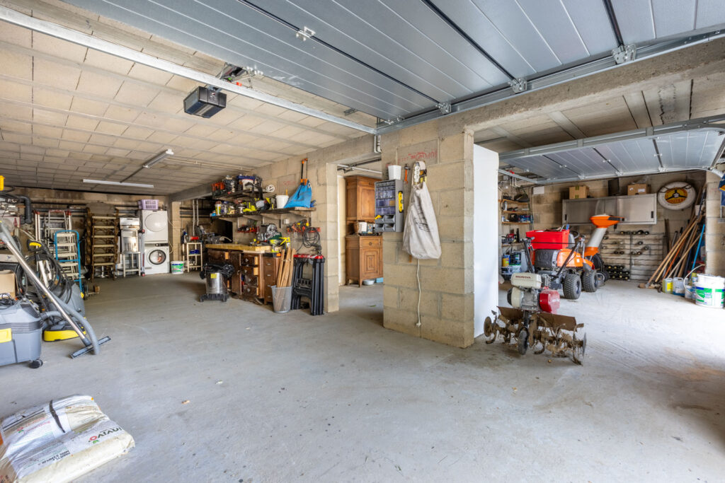 – Sous sol complet isolé et fermé par 2 portes motorisées comprenant un espace de stationnement pour plusieurs véhicules, le coin chaufferie, et un espace cuisine.