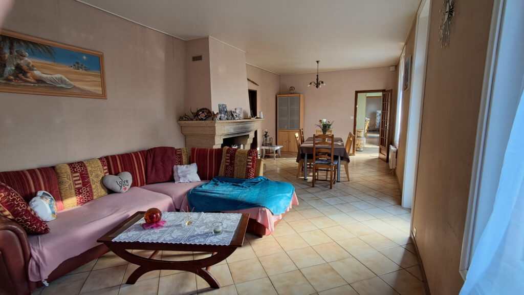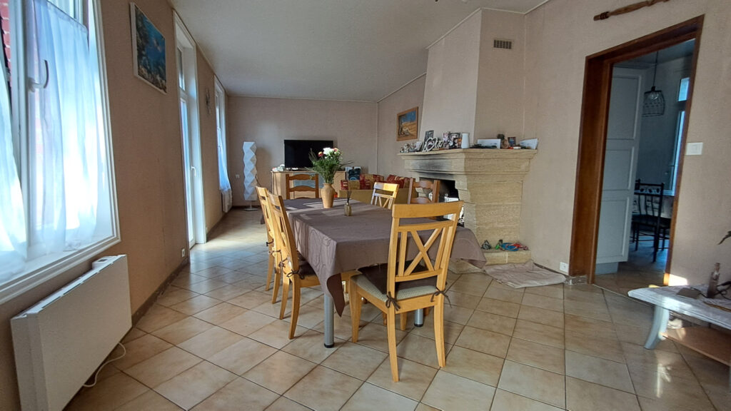 Au rez de chaussée, vous découvrirez une belle pièce de vie salon salle à manger de 33 m2 lumineuse et conviviale parfaite pour recevoir et partager des bons moments en famille ou des moments cocooning près de la cheminée.