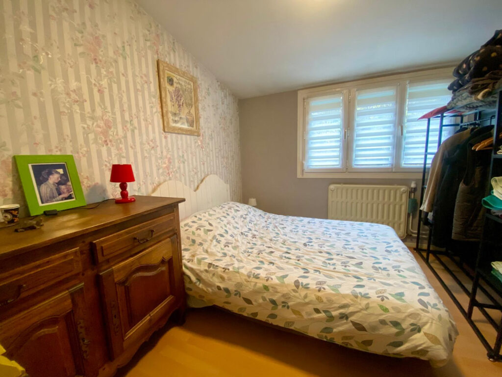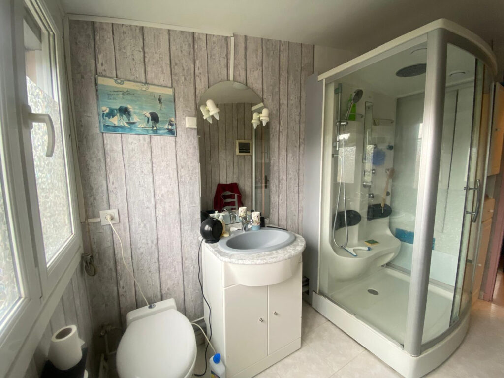 A l’étage, le palier dessert trois chambres, ainsi qu’une seconde salle de douche avec wc.