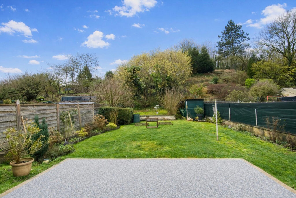 Garage équipée d’une porte automatique neuve. A l’extérieur, jardin entièrement clôturé , terrasse récente en résine avec store banne électrique et agréable vue sur la végétation.