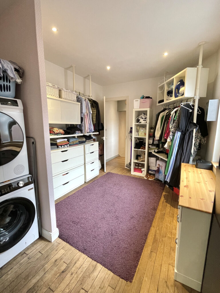 Sur un démi étage : WC, espace dressing et buanderie, salle de bains. À l’étage : palier, 2 grandes chambres dont une avec salle d’eau.