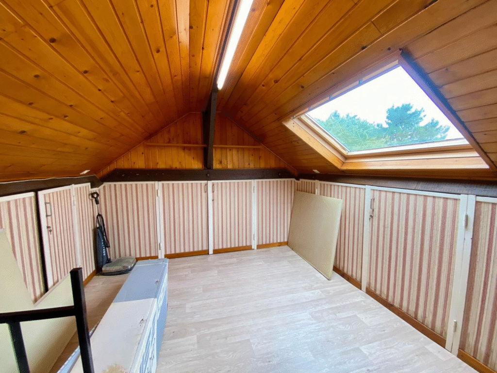 Une terrasse goudronnée, à l’ombre d’un arbre, permet de profiter du calme et des jours ensoleillés. Orintation sud.