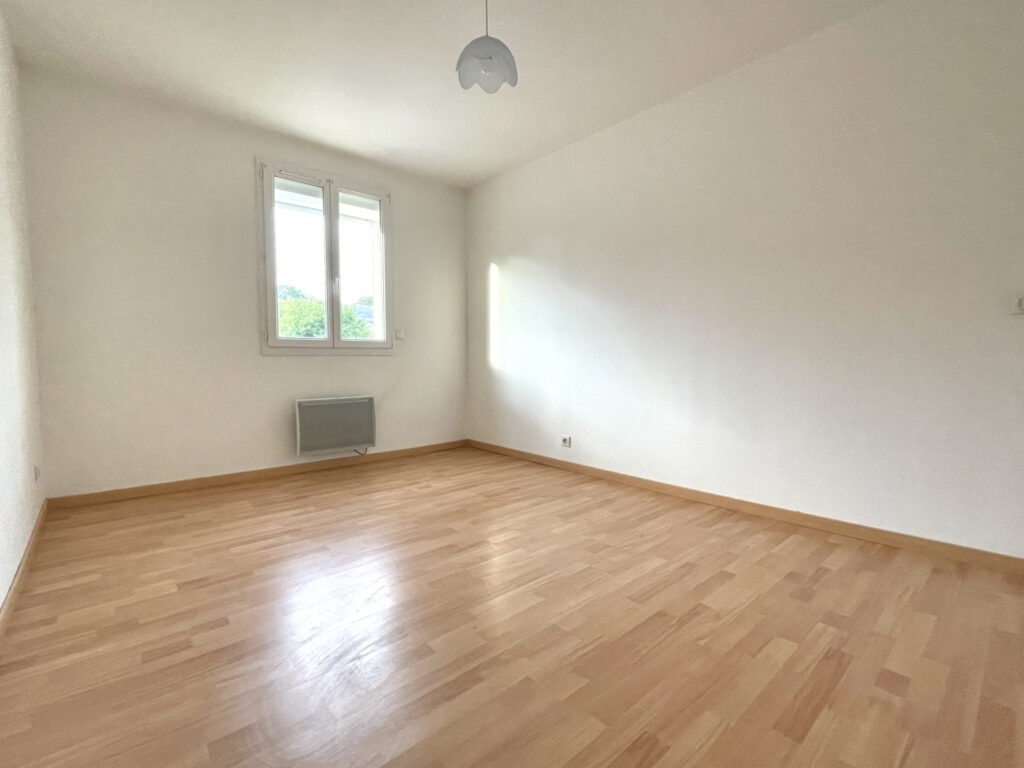 Entrée, WC, vaste séjour équipé d’une clim et d’un poêle à bois avec cuisine ouverte de 50 m2. À l’étage : 4 chambres de 9,5 à 14 m2, salle d’eau avec WC.