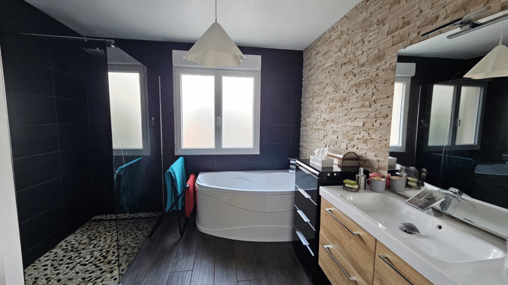 Coté nuit vous trouverez 3 chambres dont 2 avec placards intégrés ainsi qu’une grande salle de bain moderne avec douche à l’italienne et baignoire, et un toilette indépendant.