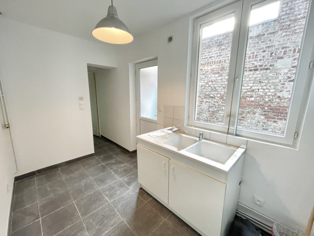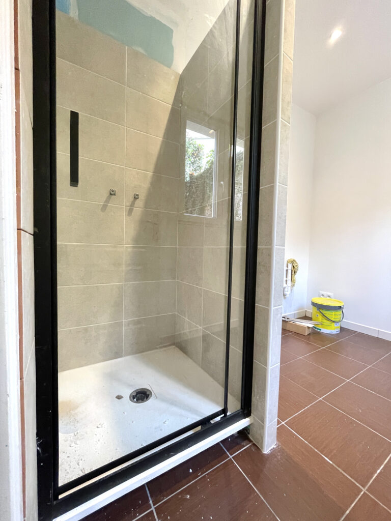 Couloir d’entrée, salon, salle à manger, cuisine, salle d’eau (la douche est en cours de rénovation et sera terminée rapidement), WC séparé.