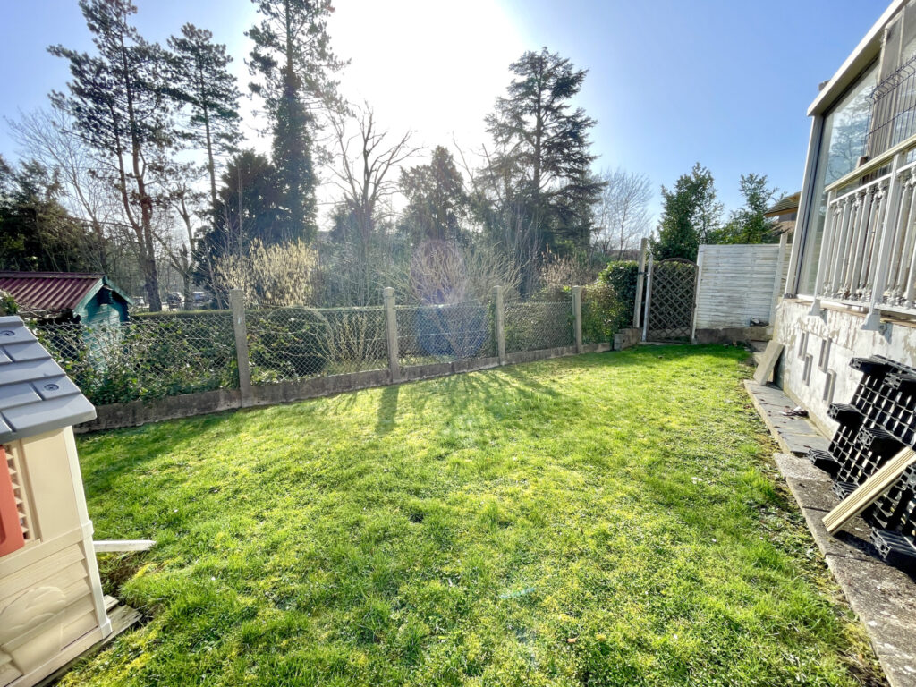 L’extérieur : en complément du garage, vous pouvez stationner un second véhicule en sécurité et vous profiterez d’un jardin avec un passage latéral, pratique pour circuler sans passer par l’intérieur de la maison.