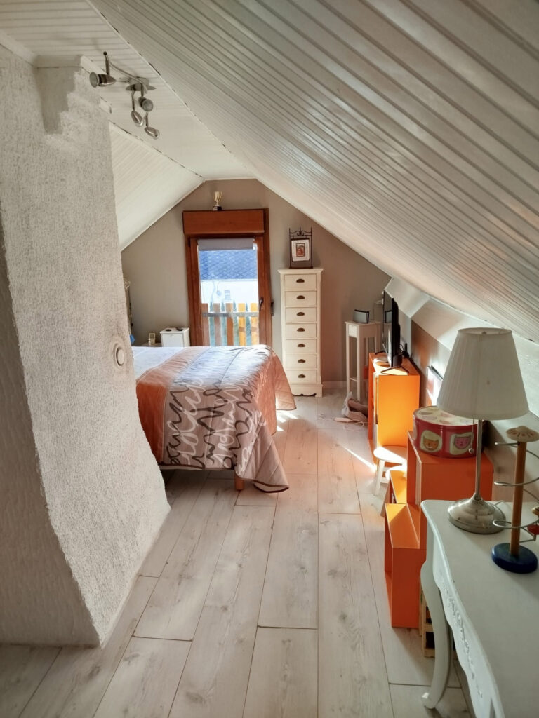 Ce n’est pas tout : à l’arrière de la maison vous trouverez un grand garage de 45m2, de quoi stationner, bricoler ou stocker ou créer un bel atelier.