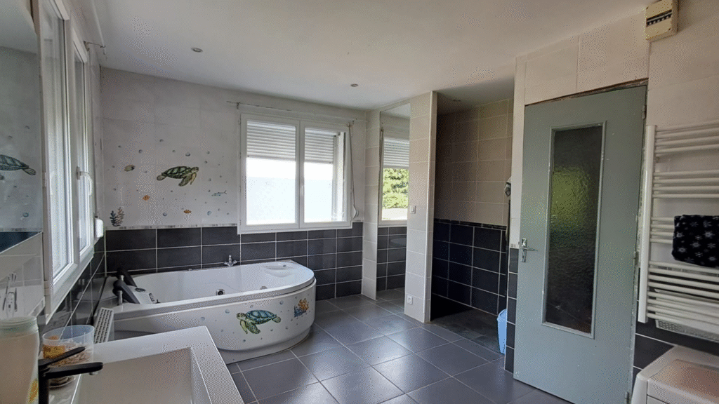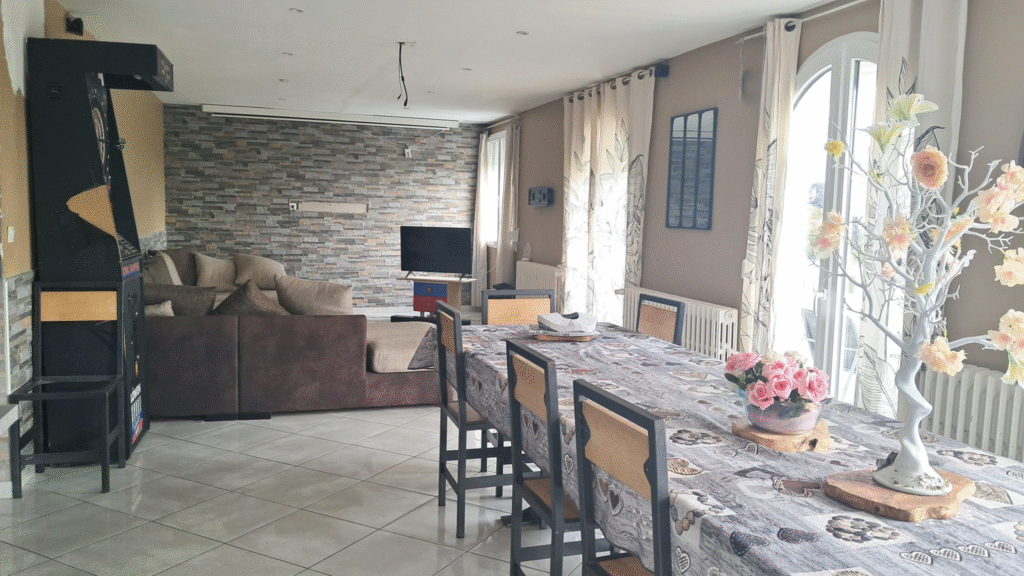 Pavillon individuel d’une surface habitable de 202 m2 (dont 60 m2 aménagés en sous-sol), 6 chambres, terrasse, jardin :