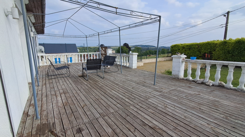 Une grande terrasse avec accès par le séjour sera appréciée pour profiter de l’extérieur et de la vue sur la campagne thiérachienne !