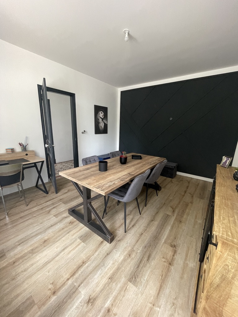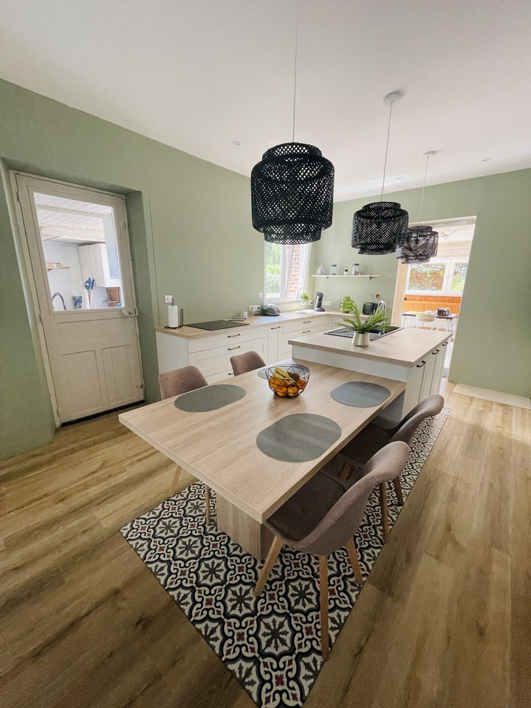 Une belle entrée qui donne sur la pièce de vie de 50 m2 avec cuisine entièrement équipée. Salon, une chambre avec salle de douche, WC, véranda et buanderie.